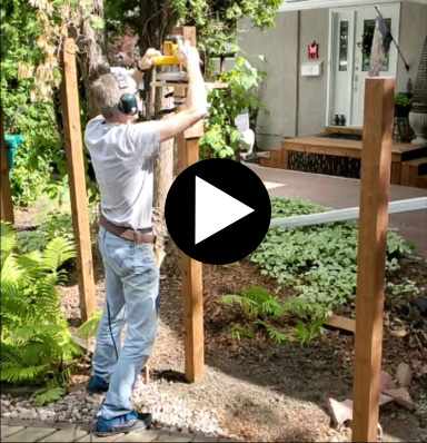 The small bucket in the background holds the gravel that I forgot to put into this hole before adding the post during the video. I can only assume that I must have been too distracted by the director, camera crew, catering people, etc. filling up the back yard.