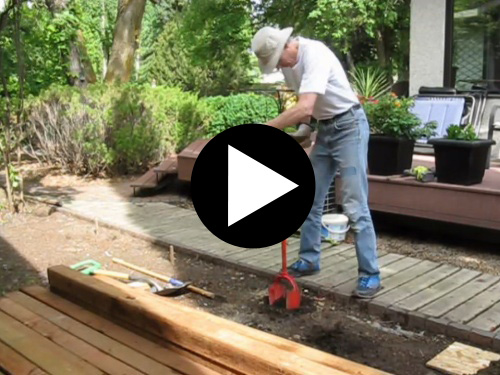 This little time-lapse video (at about 25X speed) shows one of the easier holes being dug. It had only one or two smaller roots which required the use of the root-cutting tool I had made for the previous fence. Other than that it was pretty clear sailing. Larger roots in other holes got the attention of a reciprocating saw.