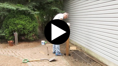 Then the rail was positioned about 2" from the highest ground level under it (as determined by a couple pieces of stacked wood) and the screws driven in. The level was used to ensure the rail was as close to horizontal as I could get it.