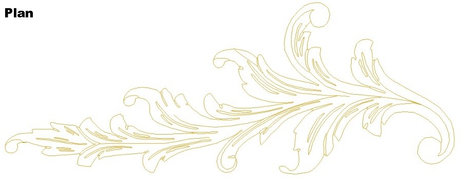 I thought I would start out by making the large carved leaves. That way, if I totally blew them, I wouldn't need to bother with the rest of the headboard. No such luck. Anyway, I wanted to copy the shape without having to pry one off the armoire I was using as a model, so I took a digital photograph of one of the leaves and then using a CAD program, traced over the outlines of the leaf image to produce a line drawing to use as a pattern. I then transferred the pattern by taping it to a wood blank and poking with an awl along the lines on the paper into the wood. I could then "connect the dots" on the wood with a pen to draw a continuous line.
