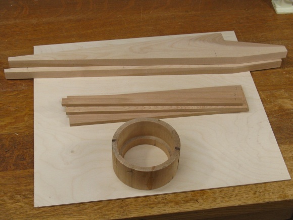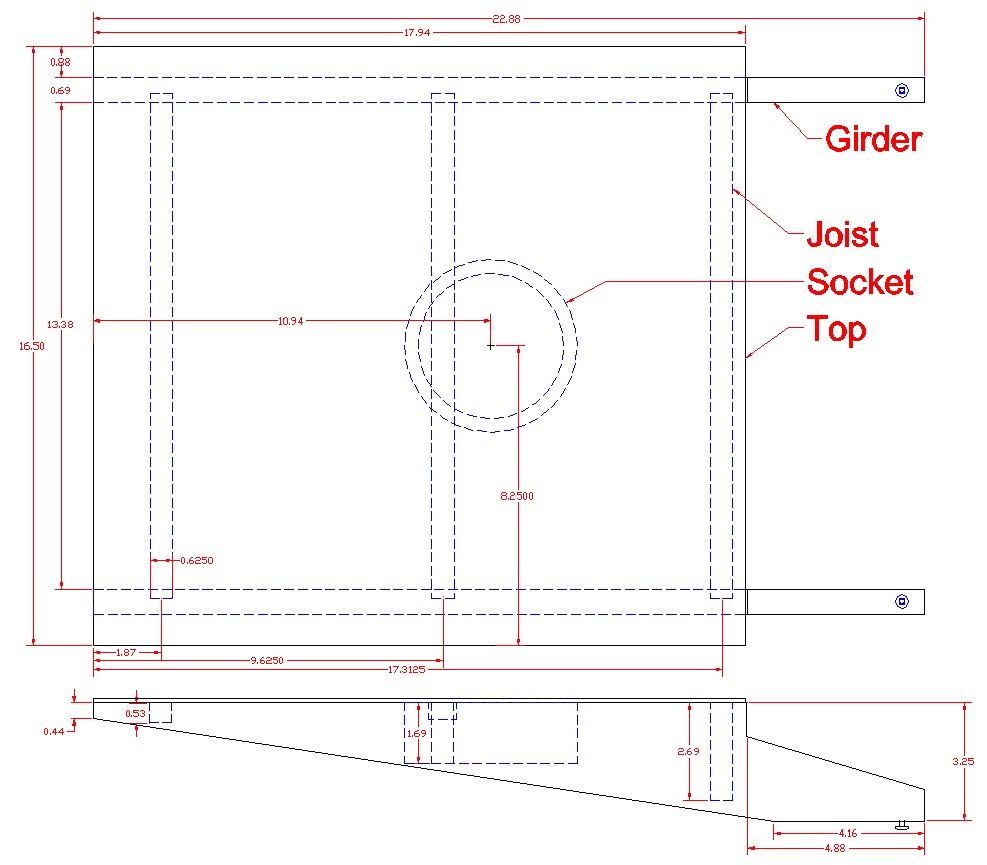 All the pieces together; girders, joists and socket all on a piece of 1/8" Baltic birch plywood for the top
