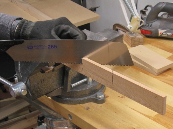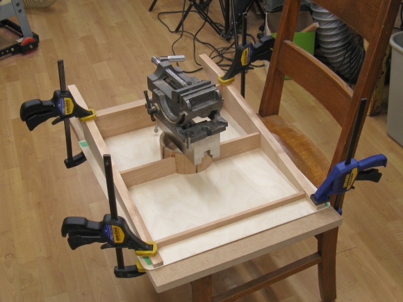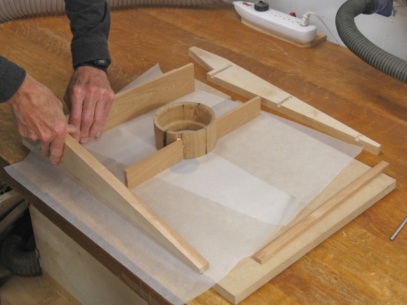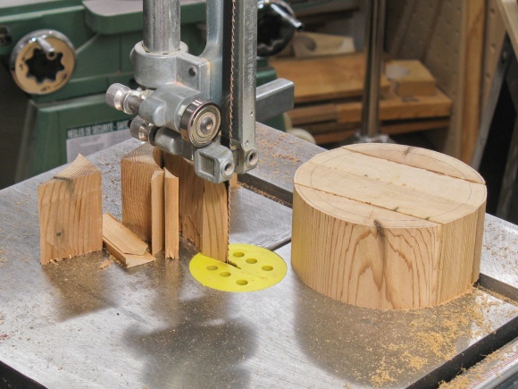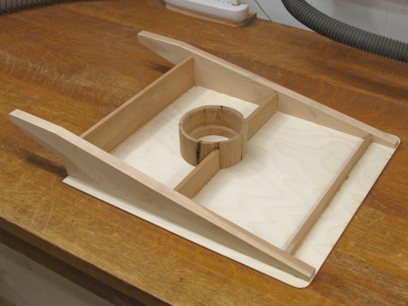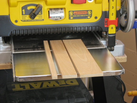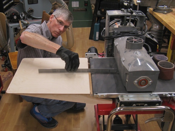 The Outfeed Table is another "machine extension" rather than a true jig, but it had lots of construction photos so it made the cut. The table was made to support longer pieces emerging from the drum sander. The sander has a moving belt that carries the pieces through but there's only about eight inches of belt before the abyss, ending in the shop floor. I've had pieces fall off (which if the truth were told doesn't usually damage them) but I thought it would help my blood pressure to have a table to accommodate my more relaxed way of life.