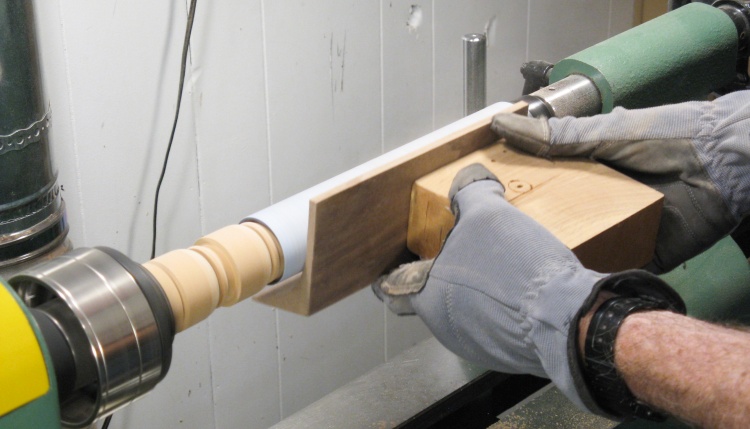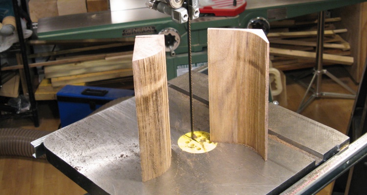 I configured the lathe as a long-drum sander and smoothed off the saw marks on the inside of the curve.