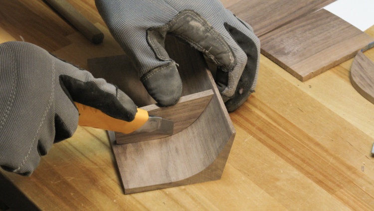 I tend to have lots of scraps of walnut around and this little plank-end was just big enough for the bin if the cracks were ignored.