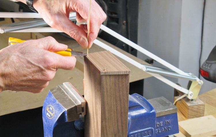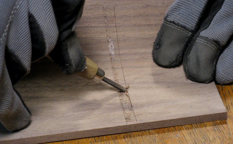 Here the edge of the wall is being marked with a sharp blade to define the edge of the dado.