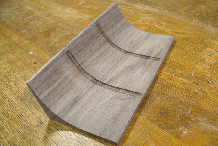 Here the internal walls have been made with a contour that followed the curve. The plan was to cut a slot along the curve (AKA dado) for each wall into which they would fit.
