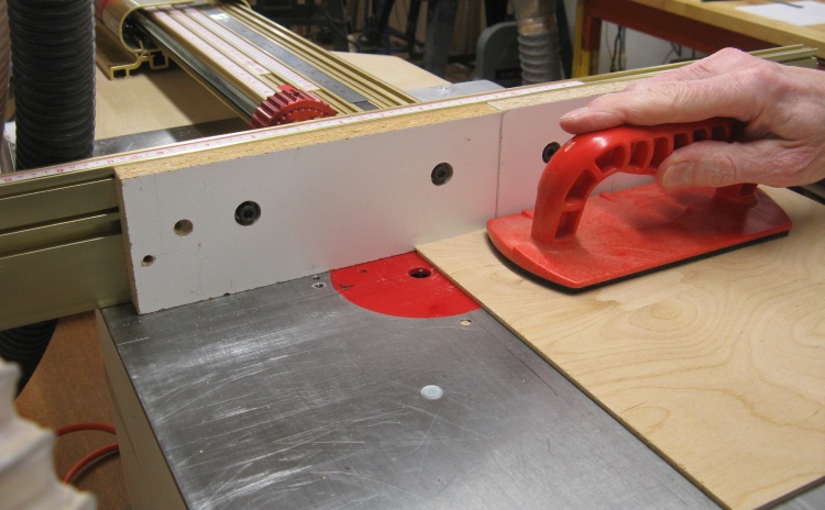 The bottom and back both needed 1/8"-wide slots to hold the walls. The 1/8" bottom piece being routed here has the slots cut only about 0.05" deep while the 1/4"-thick back received 0.1"-deep slots.