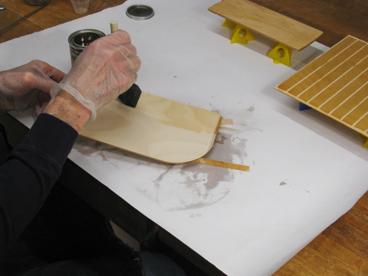 The varnishing was pretty straightforward since all the pieces were flat. I just had to be careful to avoid getting varnish in the slots and on the edges where the glue will eventually need to go.