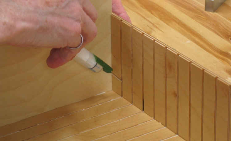 Then it was just a matter of laying a small bead of glue in the slots and sliding in the walls. The friction was enough to keep everything in place without clamping.
