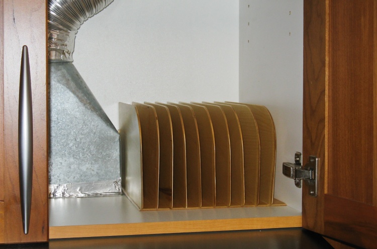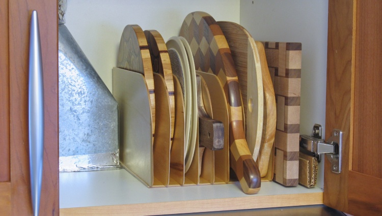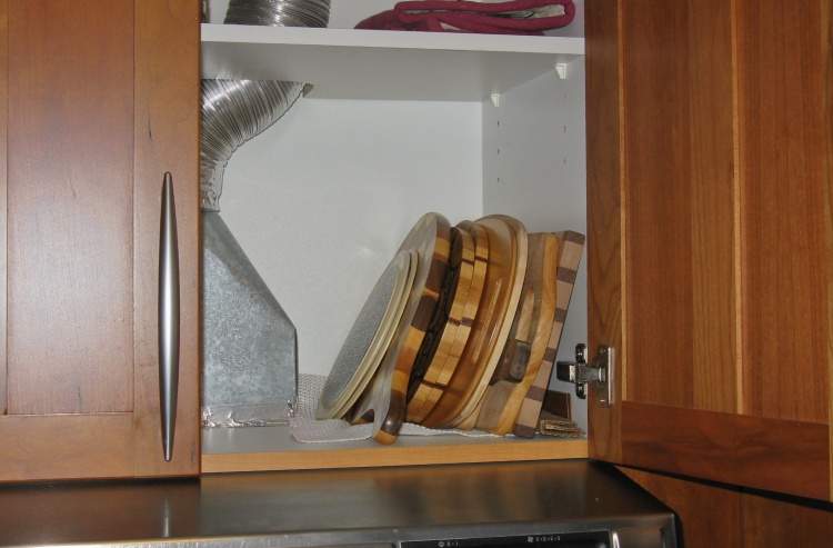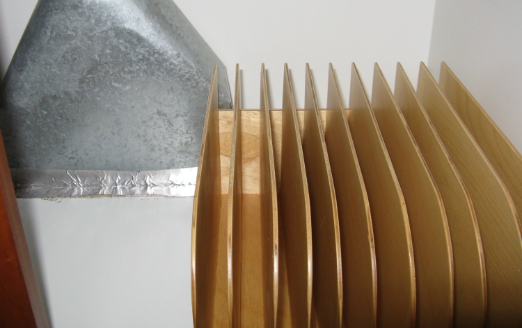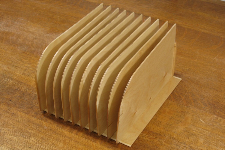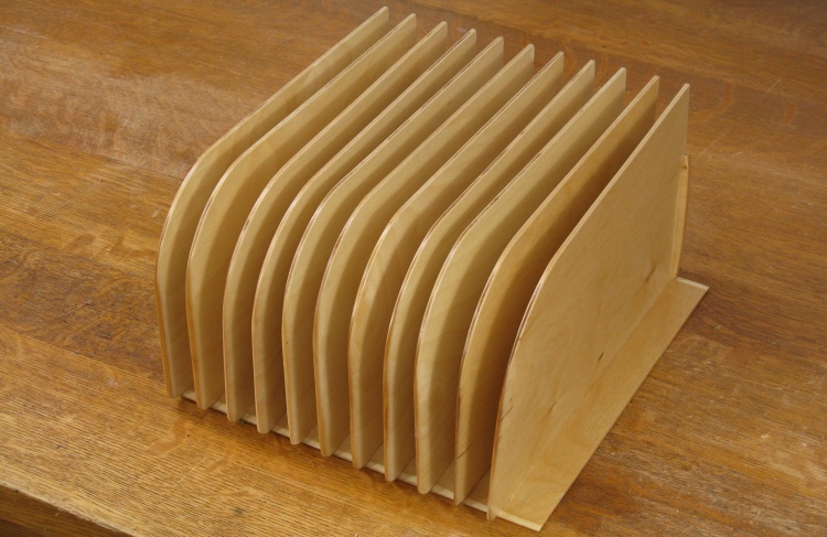 So I'll admit that the rack is not especially pretty - in fact warping of the plywood results in uneven spacing of the walls - but it does the job. Now we can extract or put away a trivet without needing the use of a second hand to make space or prevent a collapse.