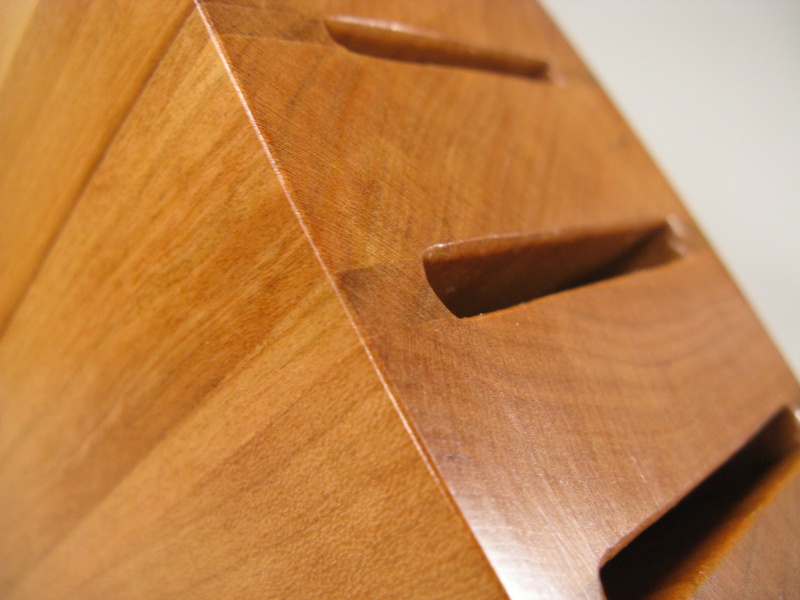 knife block to hold our kitchen knives. It's worked well but over the years we accumulated a few more knives and ended up with one more than the number of slots, forcing the extra to reside in a gadget drawer. After cleaning up the drawer one Saturday morning I was reminded of our knife/slot mismatch and thought it might be worthwhile to fix that.