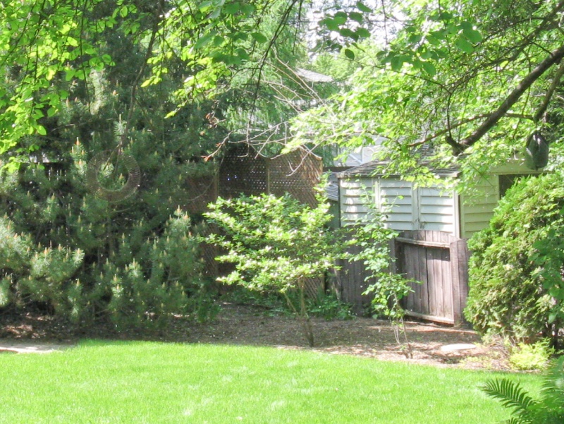 We are fortunate to have great neighbours on both sides of the yard. Both are avid gardeners and while on the South side there is a large garage for storage (hidden by trees), the North side has a row of sheds just beside the fence near the end of the yard. Now, we have a fairly deep yard and it is also pretty well-treed, but despite that the green steel sheds on the North side end up being directly visible from a seat in the sunroom summer and winter. Nearby we have some (volunteer) Virginia Creeper vine growing through the mulch, and we thought that a tallish lattice would be ideal to support the latter while blocking the less-than-idyllic view of the former.