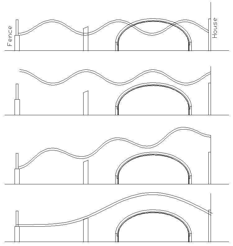 The logical design would involve using the same sinusoidal top profile as the rest of the fence, but the dimensions just didn't want to cooperate;