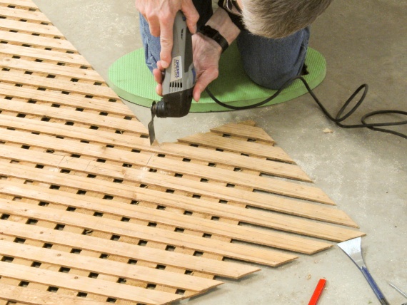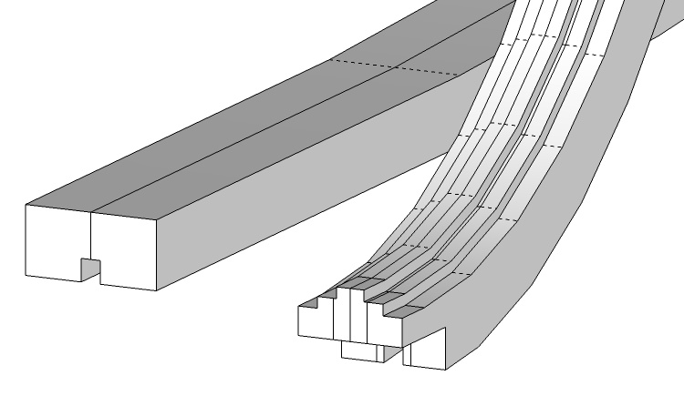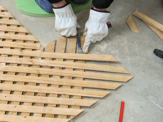 Here a couple of pieces are marked with the cut lines they need to line up correctly along the curve.