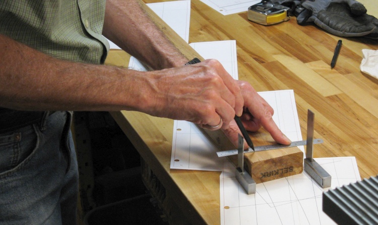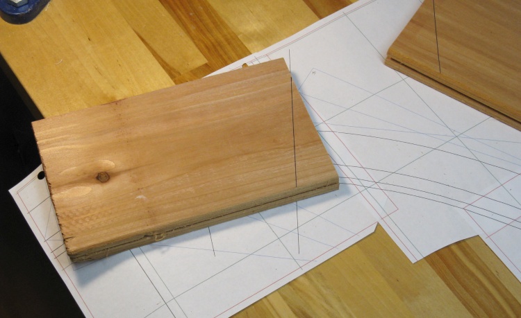 Here I'm marking the cut angle on to one of the pieces based on the plans.