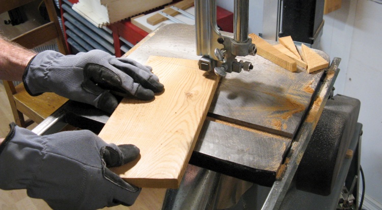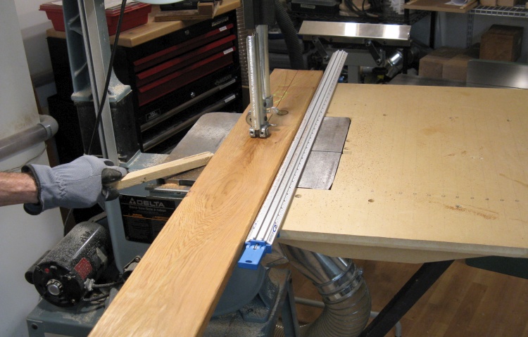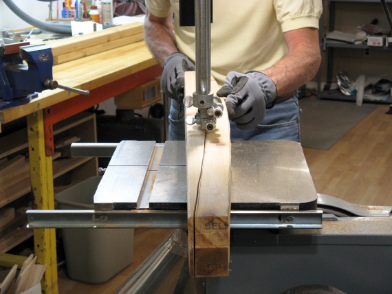 In this shot I'm cutting one of the pieces forming the center lamination into two sections to get the "half" board thickness for each side.