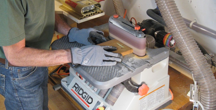 The cut ends were flattened to the marked line using the horizontal belt sander.