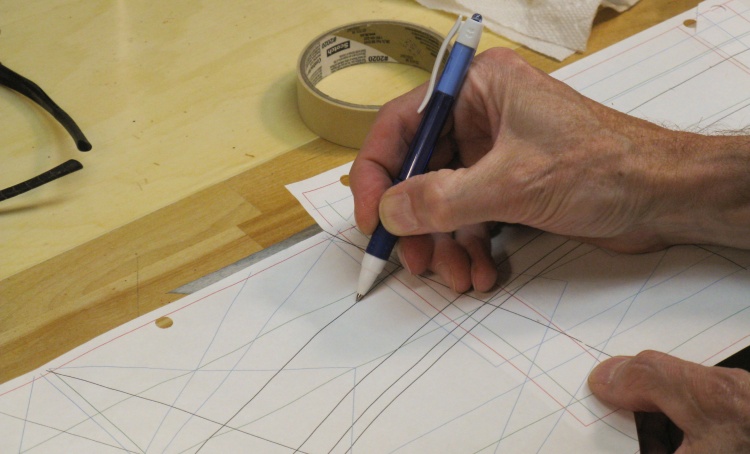 Lining up all the pieces on the full-sized plan