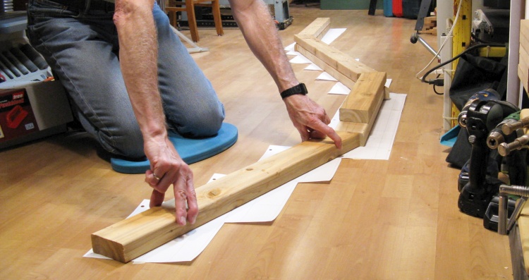 Once again I printed out a full size plan (which took 15 8-1/2 x 11 sheets since it is over 11 feet long) and used that to guide the 2x4 cutting.