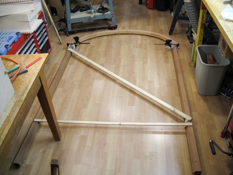 Finally the individual segments were glued and screwed together, producing the complete top curve seen here.