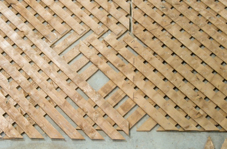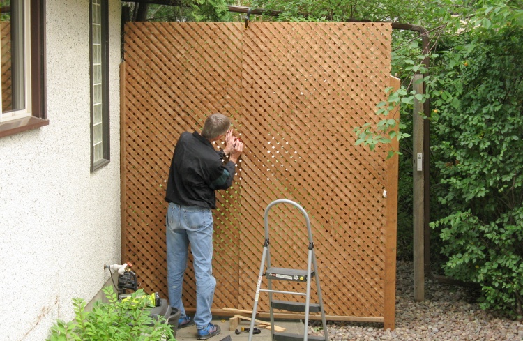 In this shot I have cut off the overlap except at the top and screwed on a piece of plywood to hold the lattice in position.