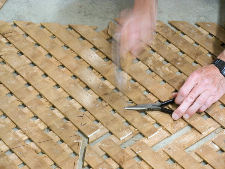Re-stapling the lattice with new strips in place