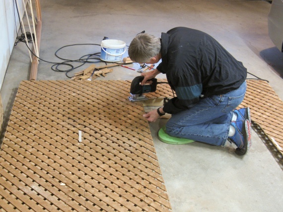 Here I'm scraping the rubbery temporary glue off one of the top-curve pieces.