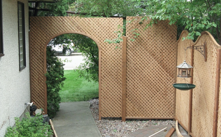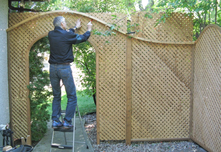 After screwing the top rail to the posts and adding the bottom trim pieces, the lattice was complete.