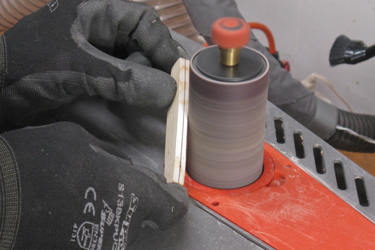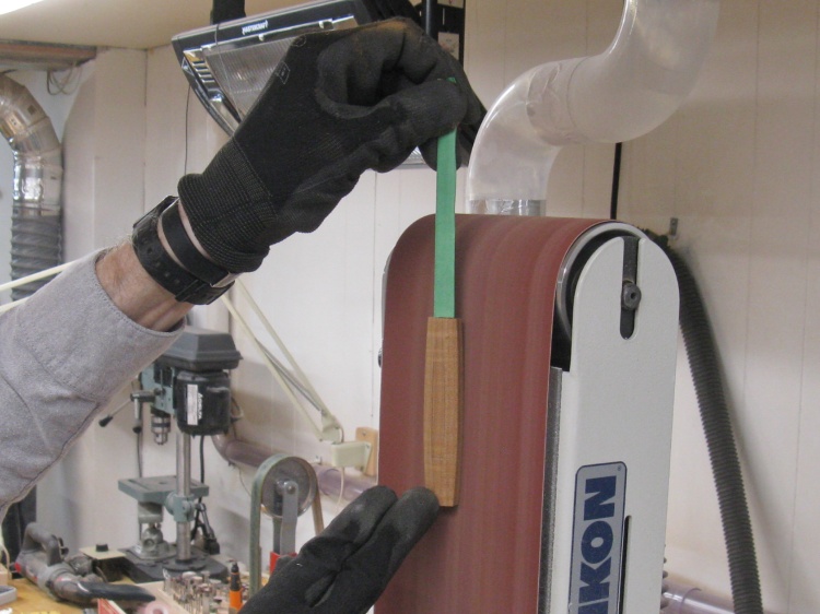 Most of the remainder of the sanding was done in this configuration; tapering the ends and then rounding off all the corners.