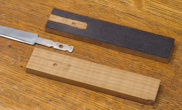 At this point my lack of a detailed plan reared its ugly head, since I couldn't go much further without deciding on exactly what the handle would look like. Besides, I didn't have the veneer I planned to place between the two halves.