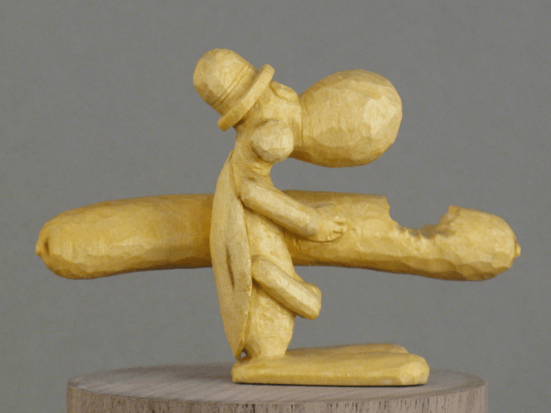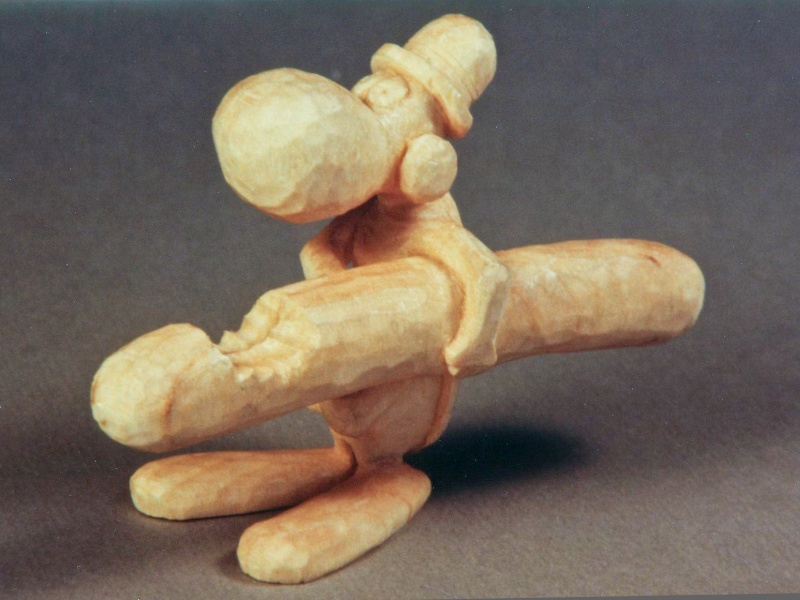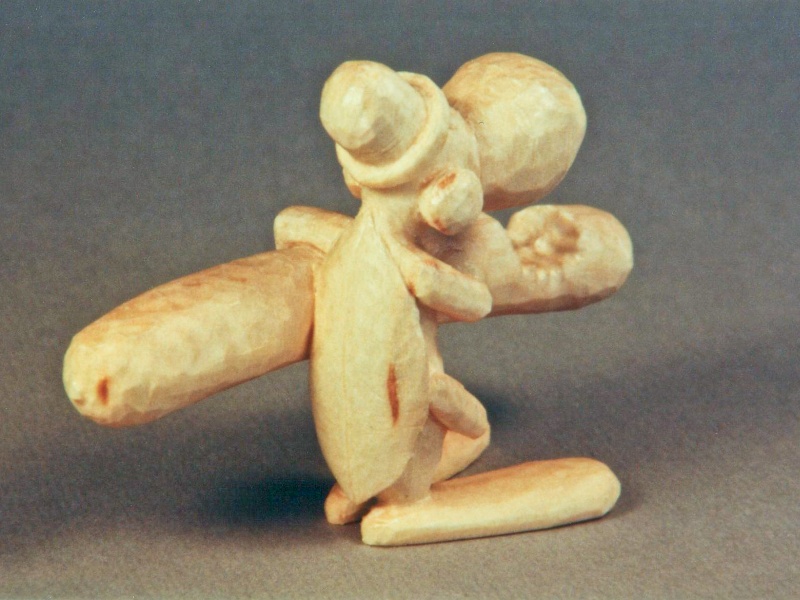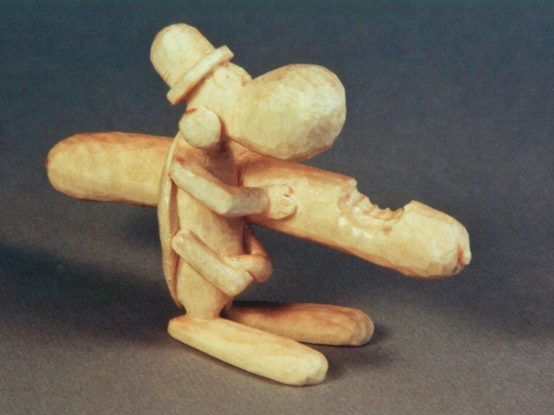 Milquetoast the Cockroach is a(nother) character from the Bloom County comic strip. For some reason I liked the image of him standing there munching on a wiener and trying to look innocent. This one was whittled out of Basswood.