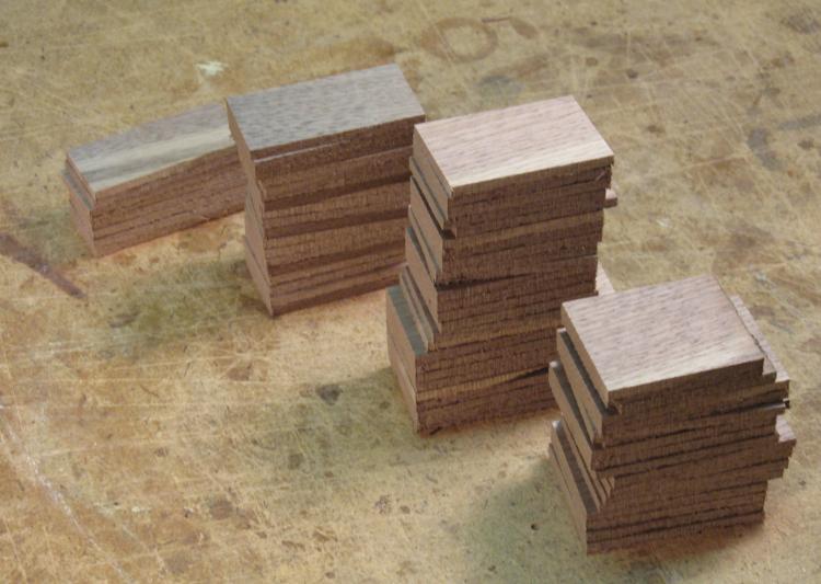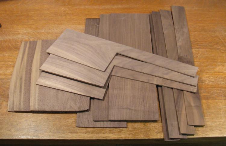 Here there a number of blanks are ready to cut to size. The large variety of shapes is just due to my choosing planks that looked like they would be less useful for something larger.