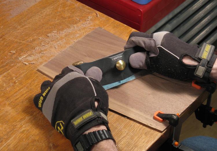 I decided that I would try to avoid what could turn out to be a daunting amount of sanding for this frame, so before cutting them up, I used a cabinet scraper to smooth the machine marks from the top sides of the blanks. This gave a nice finish that didn't need any additional work.