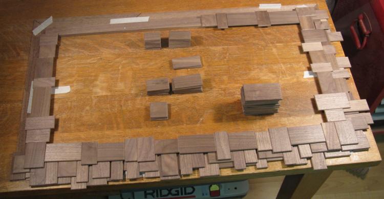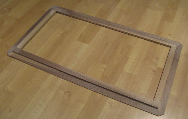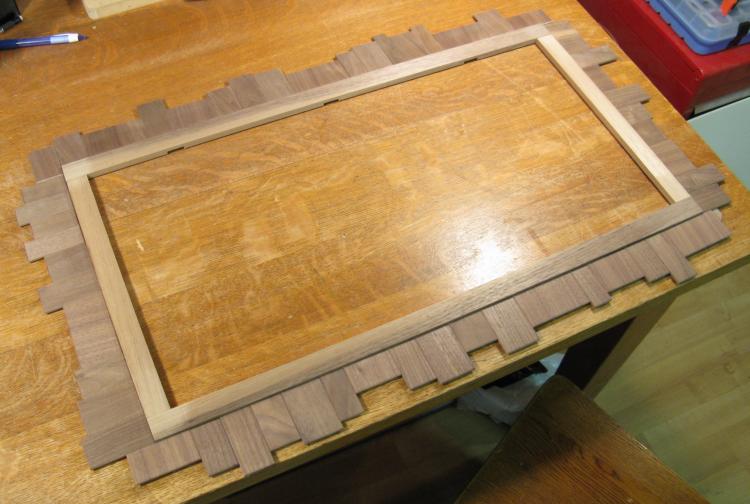 I started by making a basic frame of the appropriate size for a 12" x 24" mirror. This was a simple rectangular cross-section that I planned to use as a base to mount the wood tiles.