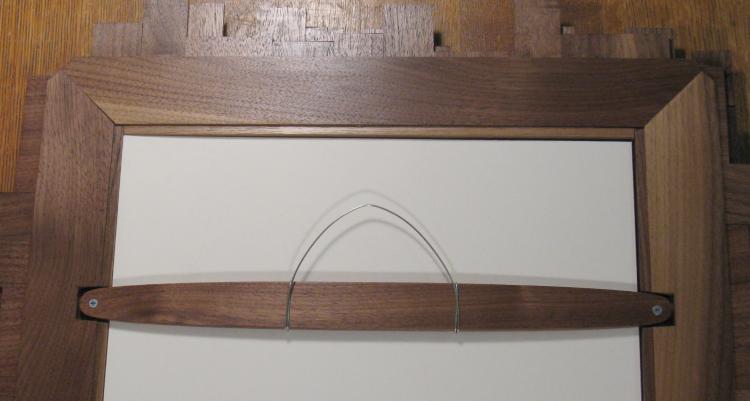 With the mirror assembled, a hangar was added to one of the braces. This is just a suitably formed piece of stainless steel wire.