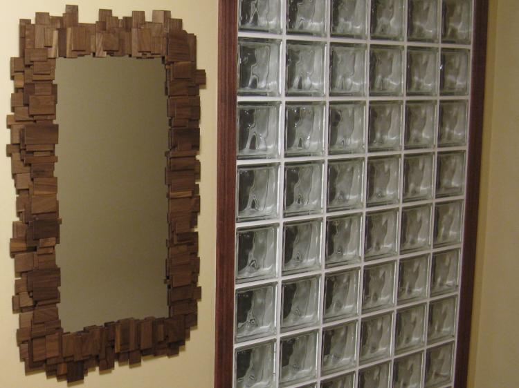 The main problem I had in making a mirror frame was deciding what style it should be. Unlike picture frames which tend to be relatively basic lest they detract from the actual picture, mirrors don't have that limitation. This seems to lead to a huge variety of styles ranging from the mundane to the bizarre. I'm not sure I'm a good judge of where the design that I arrived at falls in that spectrum, but I'd like to think it has at least a dash of "funky".