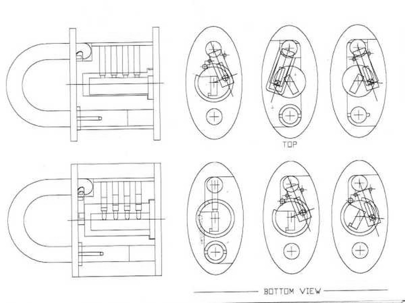The lock itself took a few tries to get right. Oddly enough, the toughest process was drilling straight holes in the cylinder for the pins. I ruined a few cylinders before I managed to get that right. Ultimately, I decided there were enough pieces and enough processes to be done to the pieces that I needed to write a procedure to do things in the correct order. It ended up being around 70 steps. I also drew the lock using a CAD program to ensure that all the pieces would line up and things that rotated would have enough room, etc. I then took the precaution of making 2 or even three pieces of critical parts. This was not too hard since when a machine is set up, making an additional part takes little extra time. This allowed me to keep to the procedure when I made a mistake and ruined a part rather than going back to square one.