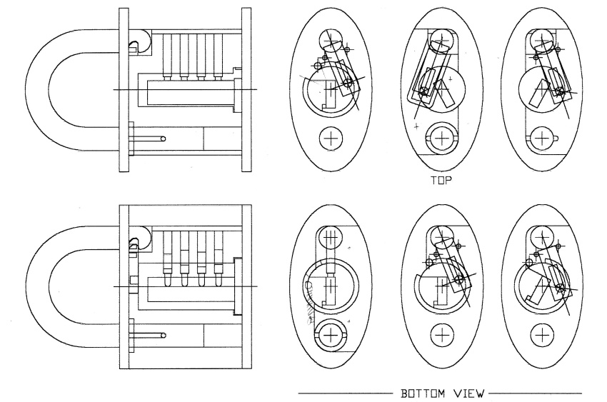 There are some drawings down further that describe the operation of the critical parts of the padlock.