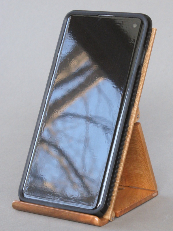 I tweaked the design so it folded fully flat to 1/3" or just under 9 mm. It ends up being a bit longer than the original when folded but that seemed like a reasonable tradeoff. At the request of the main user it also received some geometry adjustments to be able to hold the phone at a slightly lower angle. I ended up