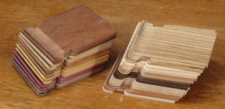 And after the cutting and sanding I had a collection of properly-sized pieces on which to start the shaping.