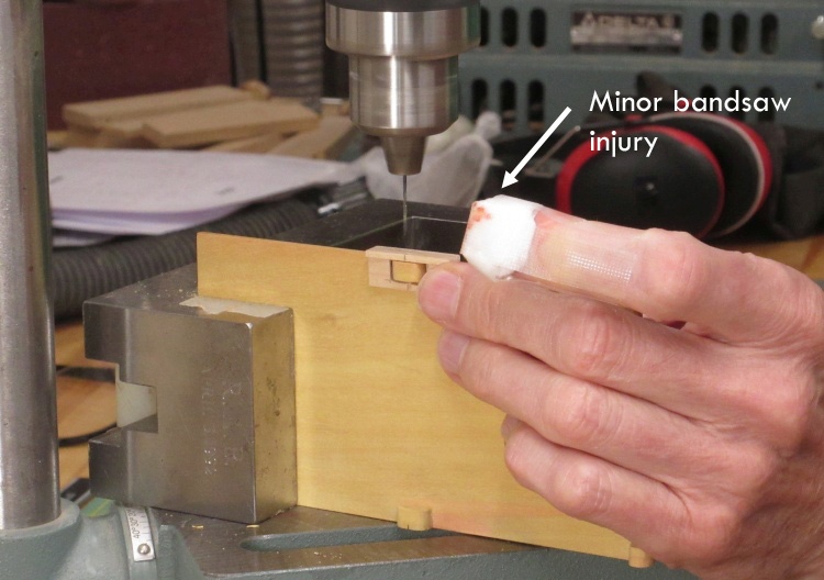 I managed to injure my finger on the bandsaw a couple days previously so here it is being held out of harm's (and pain's) way.