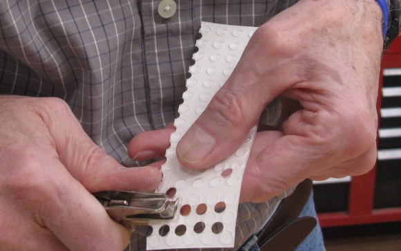 In this photo I'm notching out the corners of the bases so they clear the hinge points when the stand is folded.