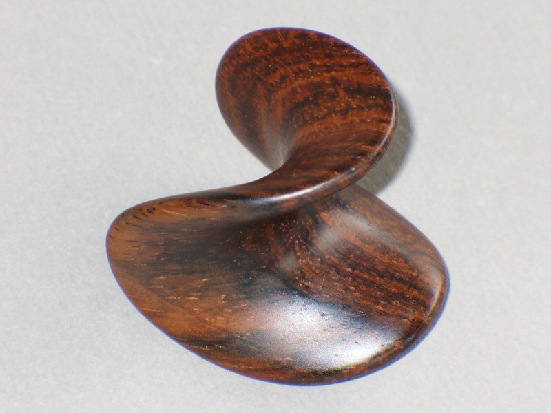 The saddle point in mathematics is a point on a surface where if the surface curves up in say, the left-right direction, then it would curve down in the front-back direction. In other words, it is saddle-shaped. I carved this little piece just because it was interesting. It was sanded until it was very smooth, and is a great little thing to handle, since the curves fit nicely around a finger.