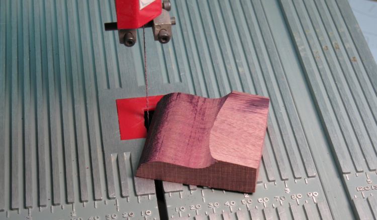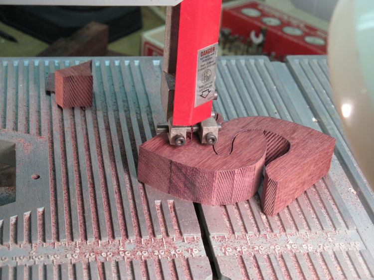 This is a little 8" delta saw which was never able to make very smooth cuts as is evident from the striped-looking finish of the edges. However, it worked fine for this application since the pieces were to be shaped afterwards.