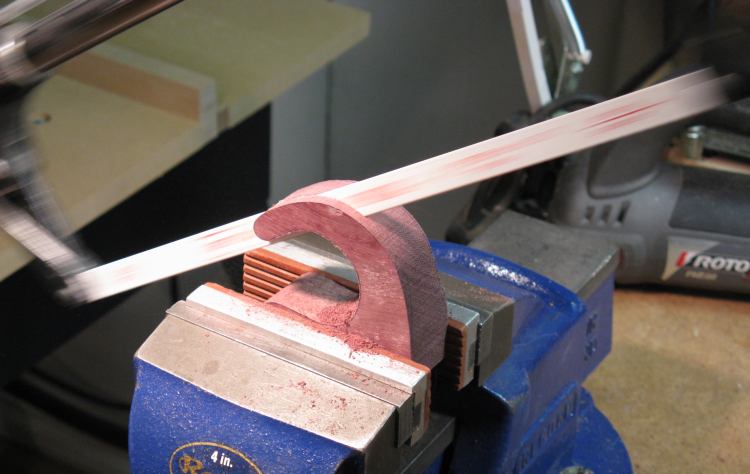 The technique for removal of the extra material was an interesting puzzle. The odd angle next to a wider section and a desire for decent accuracy precluded a number of techniques. The wood was hard enough to make sanding or filing impractical.