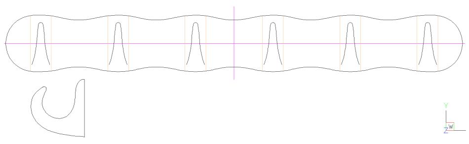 Here the six hooks have been cut out. I made them with a full "C" shape so the hooks themselves were single pieces for the best strength.