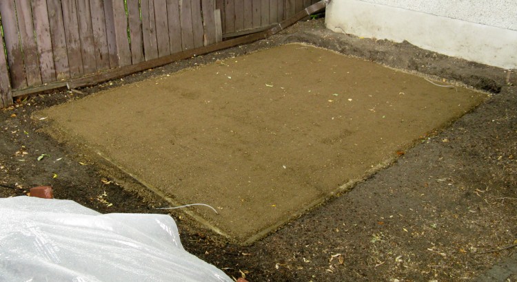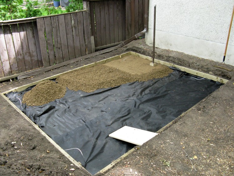 We had a yard of base gravel delivered to the driveway, and wheel-barrowed it through the garage to the shed spot.