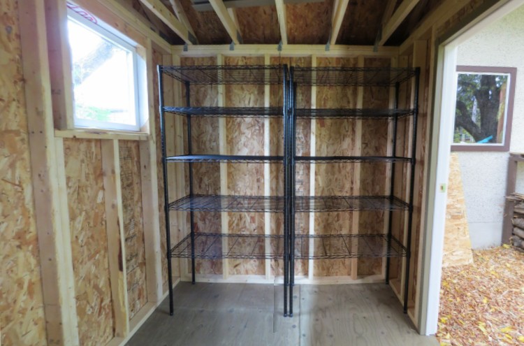 And the inside? Well, it's mostly "unimproved" except for the addition of a couple of 18"-deep wire shelving units.