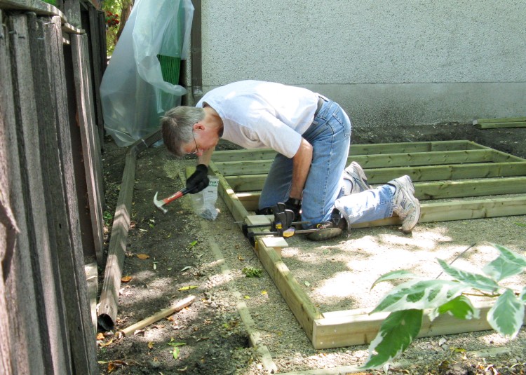 The soil wasn't really deep enough in one corner to support my planned 4" of gravel, so I decided to make a frame to ensure the gravel wasn't washed away in a heavy rainstorm.