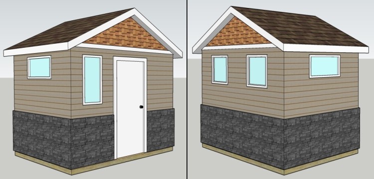 I had been thinking about the outside treatment of the walls, starting with the faux rock portion on the bottom. I had my eye on a product sold by the Co-Op but they had no prices for what they had on display, so I came up with a detailed list of what would be required to get a quote. I was gaberflasted to find that the plastic panels worked out to over $20 per square foot and it would have been over $2000 for the shed. There were other brands of faux rock that were presumably less expensive but they also looked extra-cheesy so they didn't seem worth the trouble.